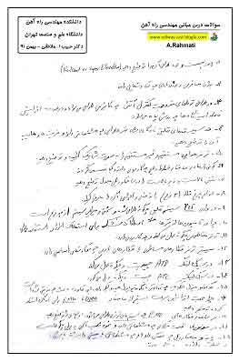 نمونه سوالات مبانی مهندسی راه آهن (دکتر حبیب اله ملاطفی)